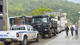 December 21, 2016. The residents of the parish of San Carlos de Panantza, canton of San Juan Bosco, provincia Morona Santiago, prefer not to leave their farms or houses. On a streets only pass vehicles and tanquetas blindadas with uniformados armados, that run through the area and surrounding villages.